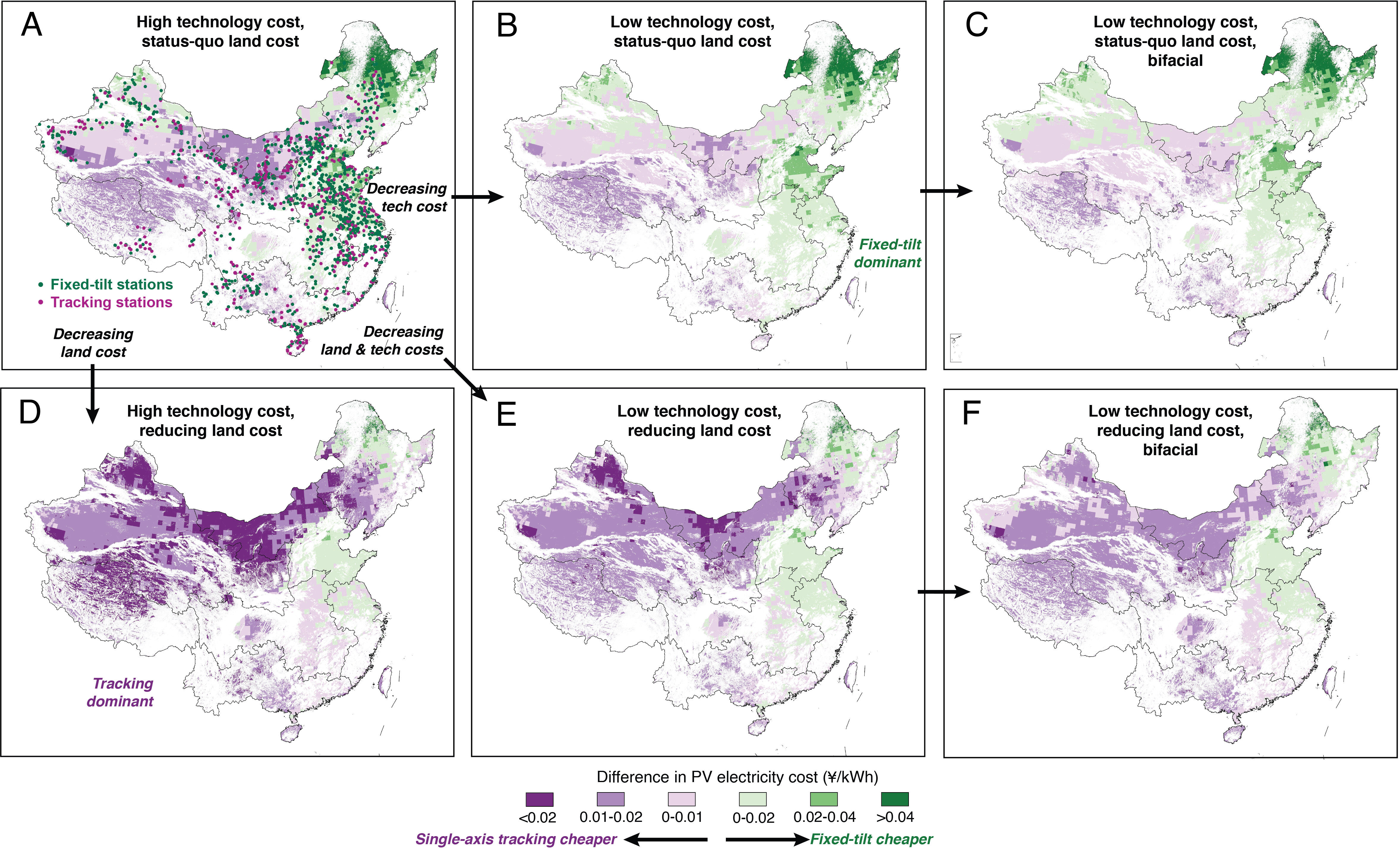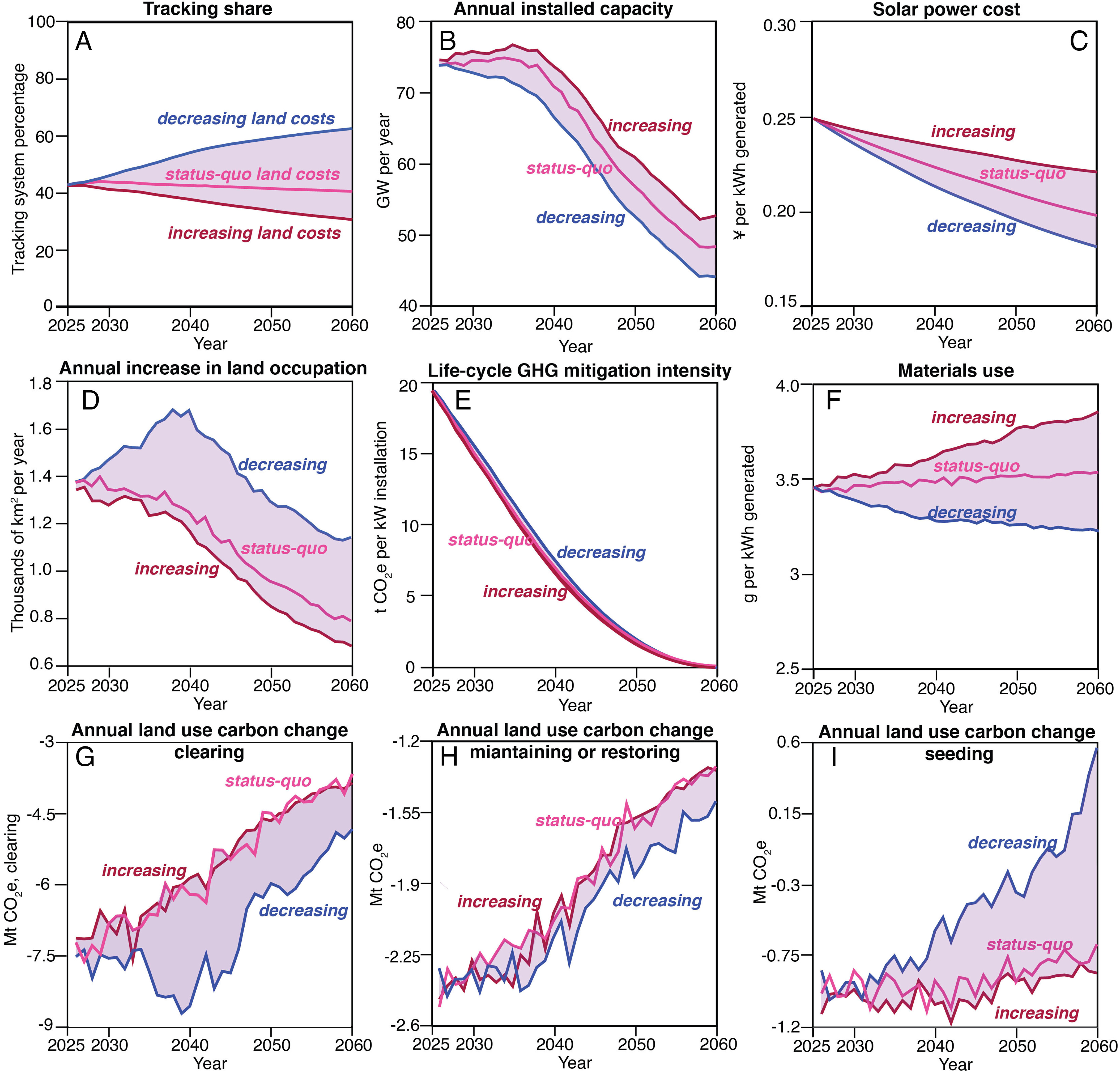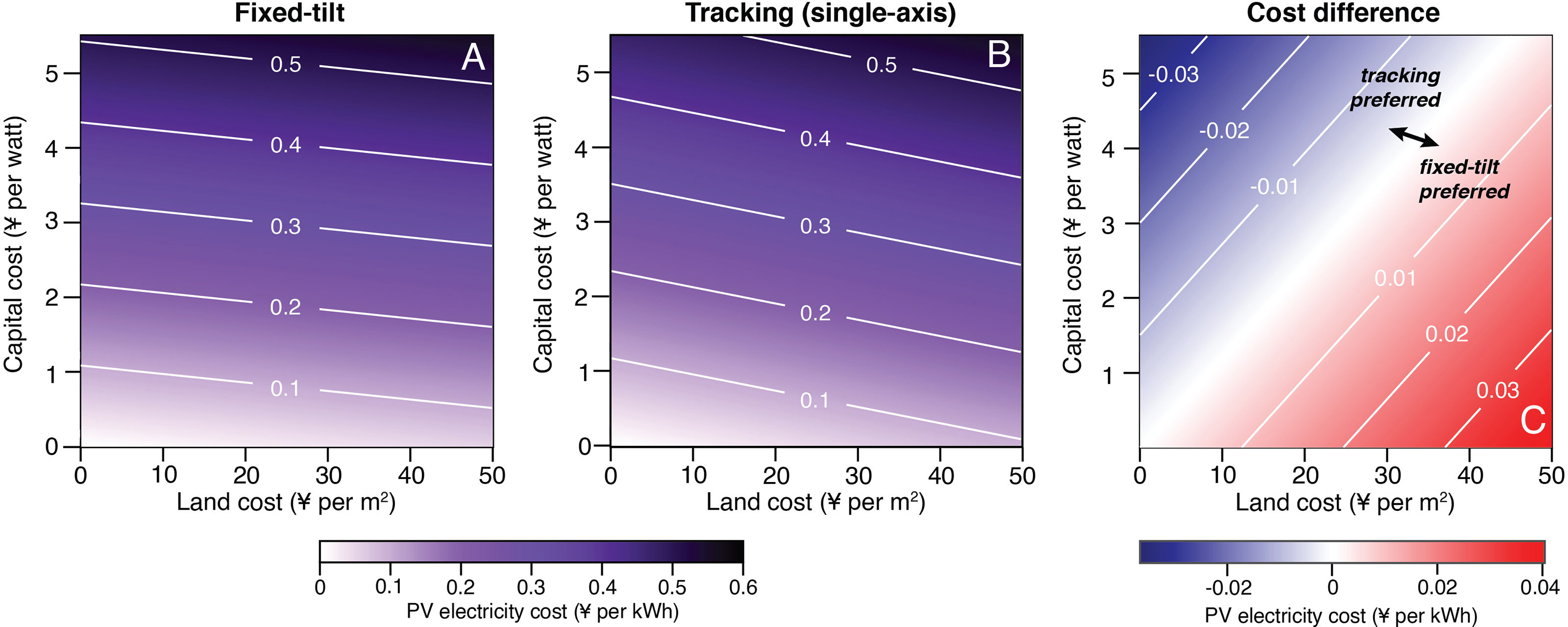 Employing an interdisciplinary modeling approach, the researchers assessed the impacts of land costs on sustainability outcomes, including carbon mitigation, material demand, and land use-related emissions, under various future land policy scenarios in China. The study found that rising land prices could steer technology choice toward the more land-efficient fixed-tilt systems. However, to meet the same electricity generation target, this shift would require a greater number of PV panels, consequently increasing material input. Conversely, lower land prices would favor the adoption of tracking technologies. While these systems need fewer panels to achieve the same electricity output, they demand a larger land area.